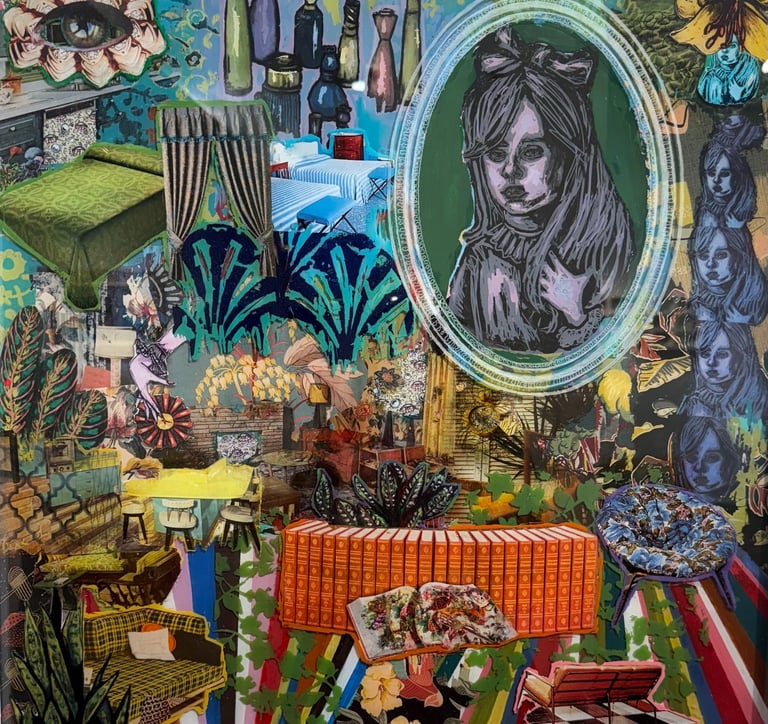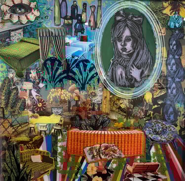 I blend textures, materials, and processes to create mixed-media artwork that invites viewers into a multi-layered world of embedded meaning.