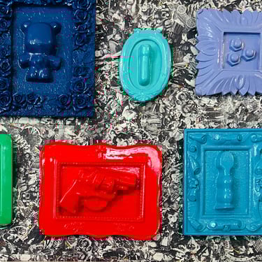 Blue oval spheres